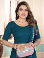 This Btex Fashion Teal Lycra Stitched Saree Blouse is crafted from premium stretchable lycra, offering a smooth, flexible, and ultra-comfortable fit. The rich teal shade brings a fresh, elegant, and modern touch, making it perfect for festive occasions, weddings, parties, and everyday ethnic styling. Its breathable, soft-textured fabric adds a subtle sheen that enhances any saree look. Designed to flatter all body shapes, this ready-made blouse pairs effortlessly with silk, chiffon, georgette, printed, and designer sarees.