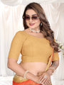 Elegant Crushed Texture Golden Readymade Saree Blouse